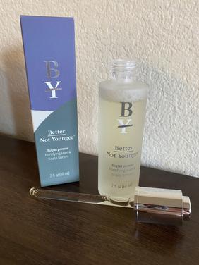 If you want healthy, dense, and thick hair, you probably need a scalp serum. Other better not younger hair care products include new dawn (scalp cleanser), lift me up (hair thickener) and superpower (fortifying hair and scalp serum). Superpower hair & scalp serum: Squatch, coco & eve and mielle organics. Courtesy of better not younger.